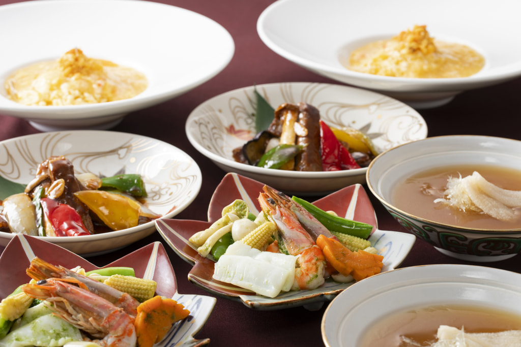 国産ふかひれや海の幸、国産牛など豪華食材をふんだんに用いたコースをご用意いたしました。