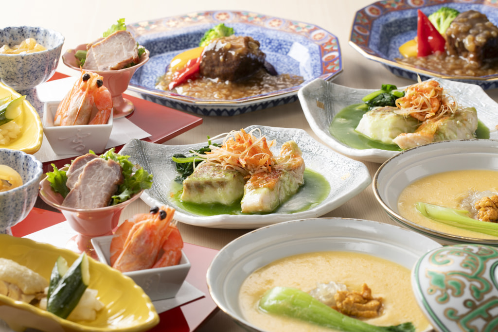 大阪産(もん)の希少な黒毛和牛「なにわ黒牛」や静岡産金目鯛・紀州産梅真鯛など国産素材にこだわり、華やかな席にふさわしい人気食材満載の豪華なコース料理をご用意いたしました。